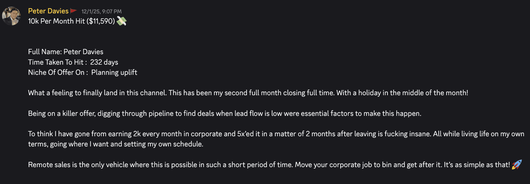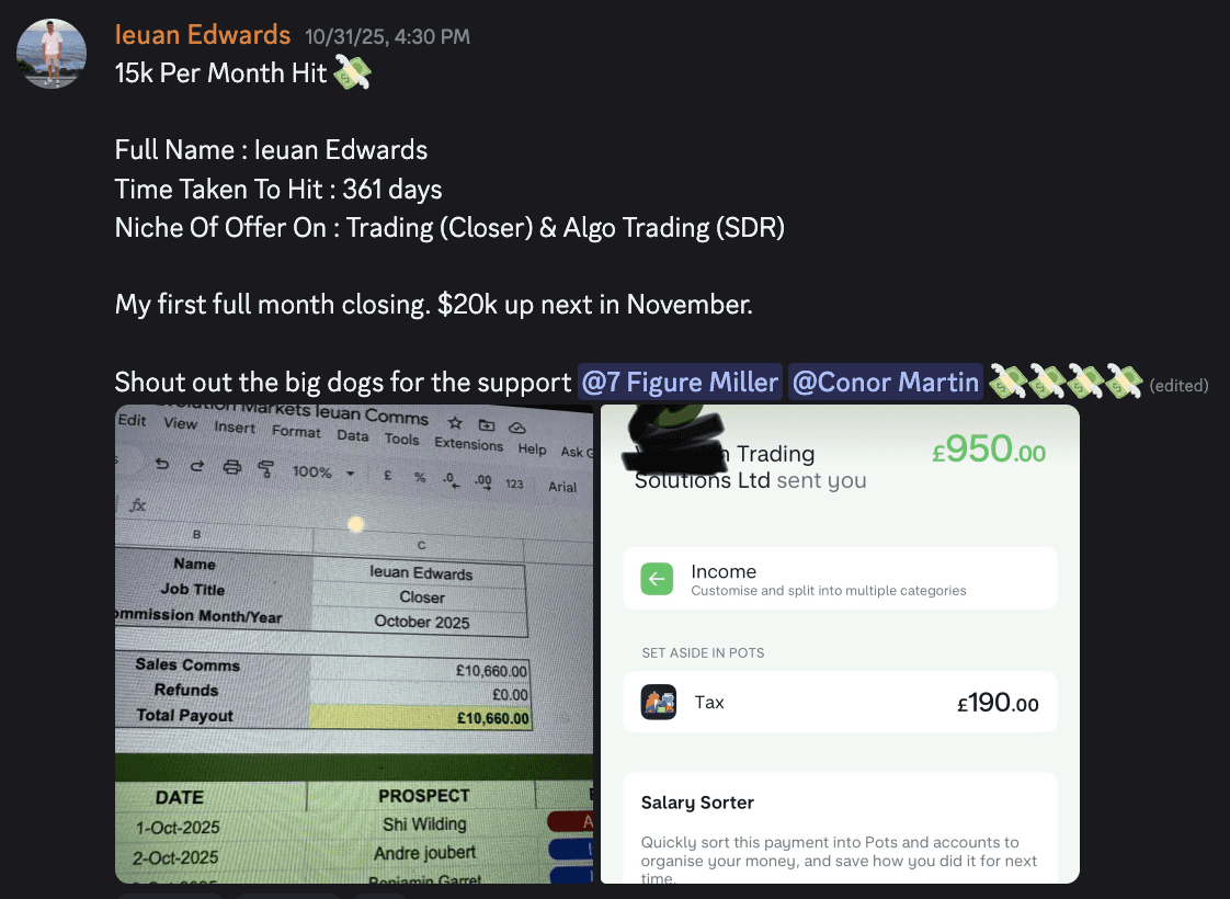 Taking 2 to 5 calls per evening, closing at 25% part-time, you could be clearing £6k per month within your first month alongside your corporate salary. The numbers speak for themselves.