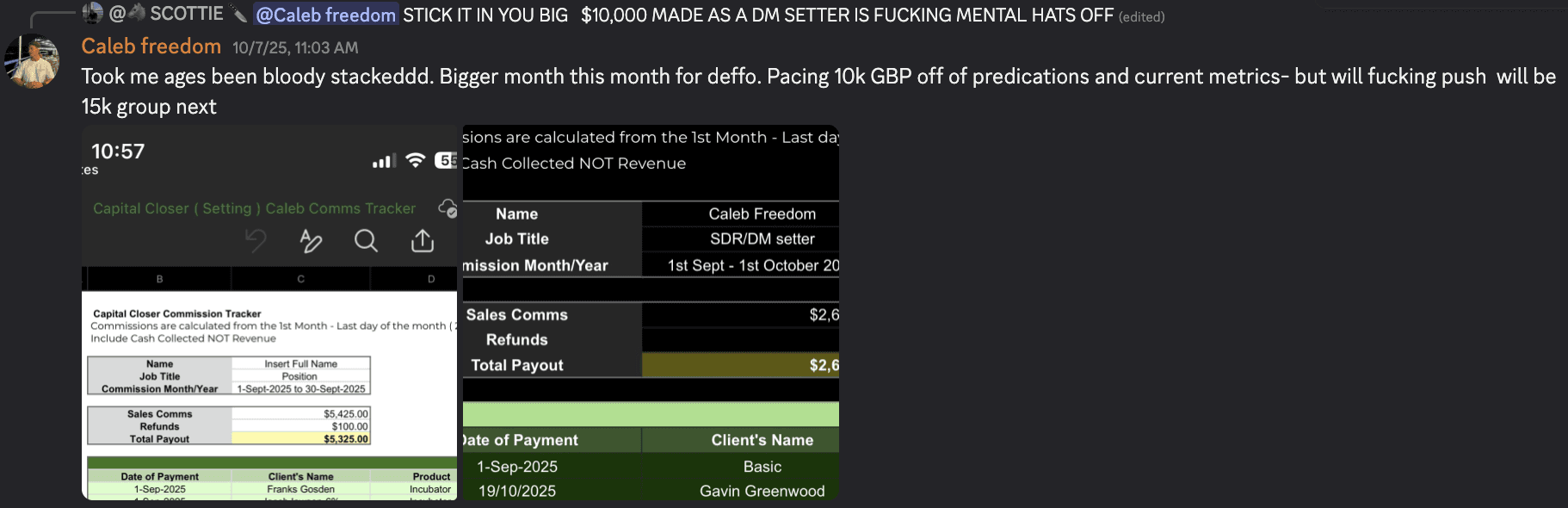 Closed call recordings from reps in our organisation clearing £20k–£80k/mo. All from corporate sales backgrounds like yours.